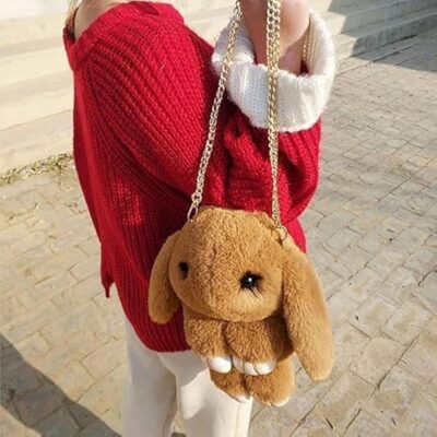 Cute Plush Bunny Rabbit Sling Bag (Brown)