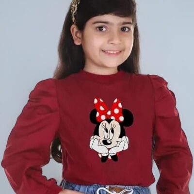 Girls Mickey Top Stylish Girls Kids Top (Maroon)