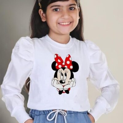 Girls Mickey Top Stylish Girls Kids Top (White)