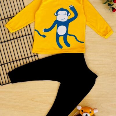 Kids Full Sleeves Dark Grey T-Shirt (Yellow – Black)