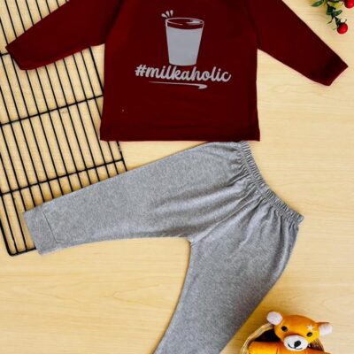 Kids Full Sleeves Dark Grey T-Shirt (Maroon)