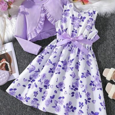 Style Girls Floral Printed Frocks & Dresses(Purple)
