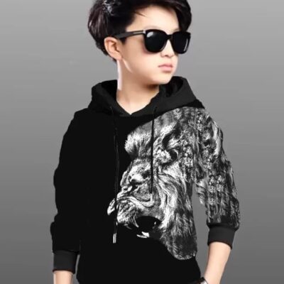 Kids Boys Cotton Blend Casual Hooded Neck (black white)