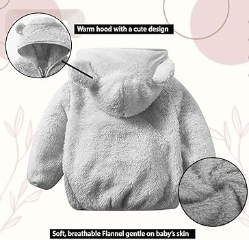 Baby Teddy Bear Ear Soft Flannel Long (Grey)