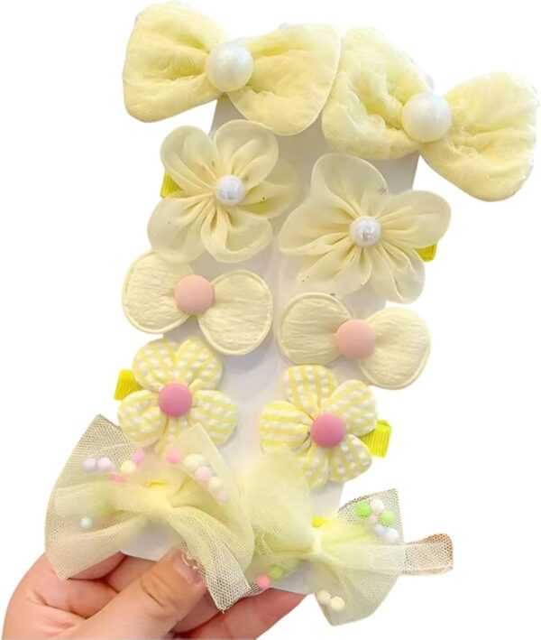 10-Piece Baby Hair Clip Set for Girls (Yellow) includes adorable clips to style your baby’s hair beautifully.
