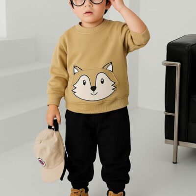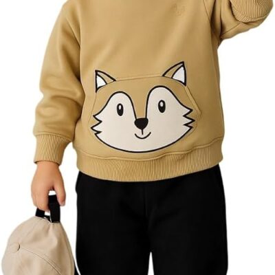 Boys Cotton Sweatshirt with Cute fox Print(Beige)