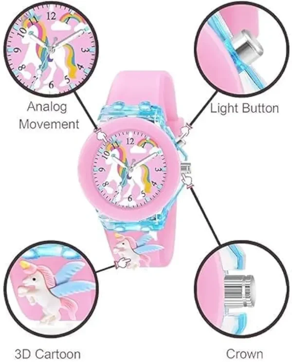 3 Pcs Kids Unicorn Watch Rabbit (Pink Horse) – Cute cartoon-themed kids watches with colorful designs, perfect for everyday fun and learning time