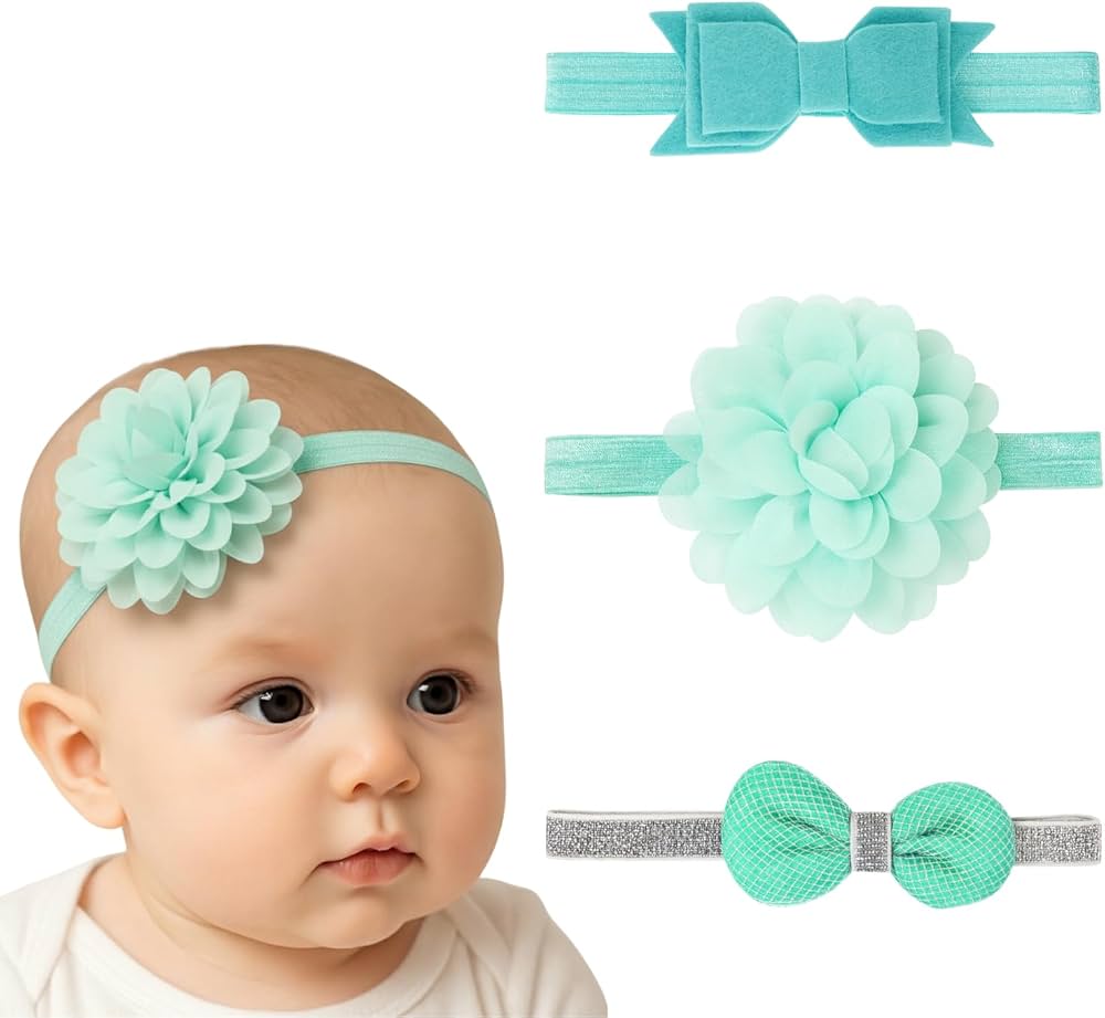 3Pcs Baby Headbands for Baby Girl and boy (Green)