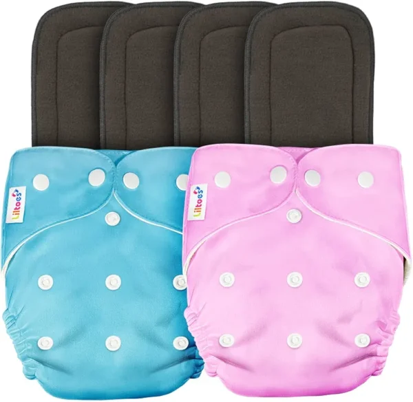 Each set includes 2 cloth diapers and 4 highly absorbent inserts that help keep your baby dry for longer periods. The inserts provide extra absorbency and can be layered for overnight protection if needed.