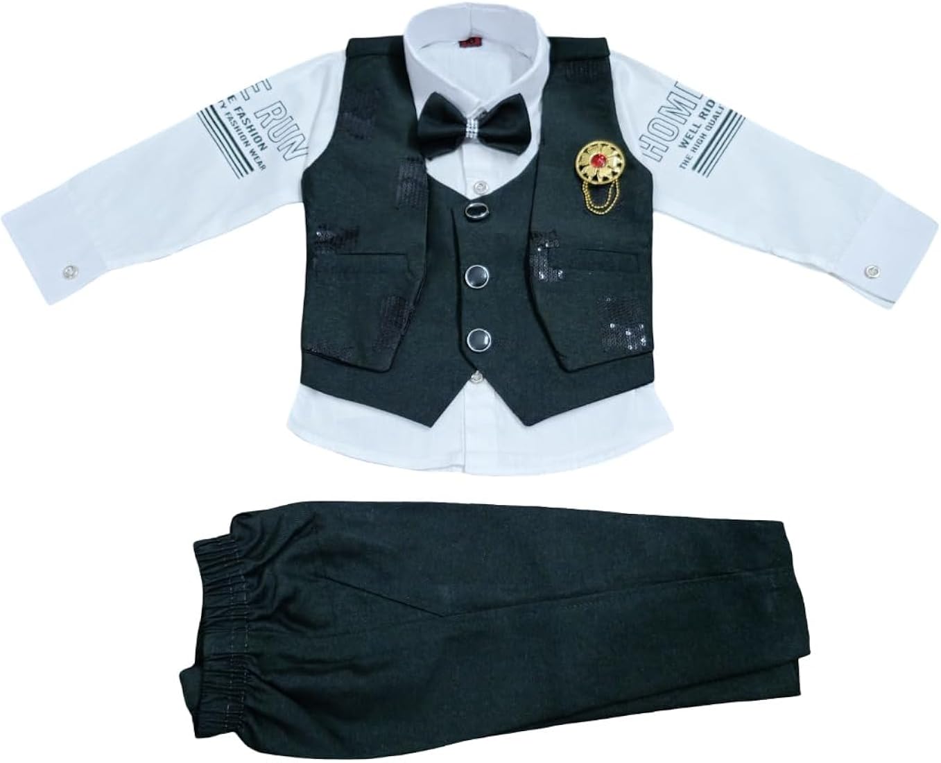 Baby Boy Formal 3-Piece Suit with Waistcoat – Stylish formal outfit with waistcoat, shirt, trousers, and bow tie for a smart and elegant look.