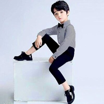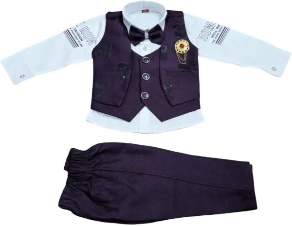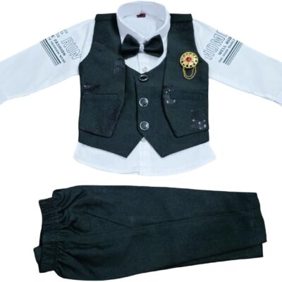 Baby Boy Formal 3-Piece Suit with Waistcoat – Stylish formal outfit with waistcoat, shirt, trousers, and bow tie for a smart and elegant look.