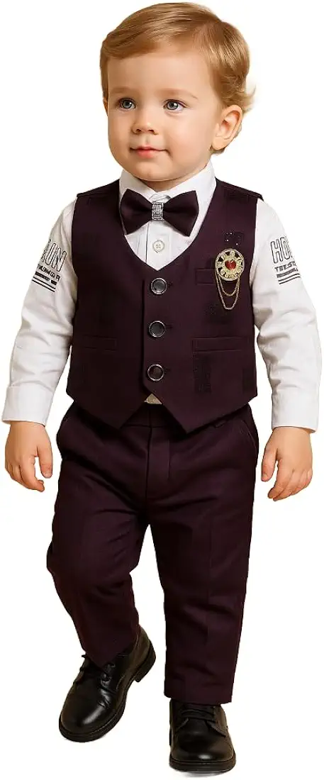 Baby Boy Formal 3-Piece Suit – Waisrcoat (Wine)