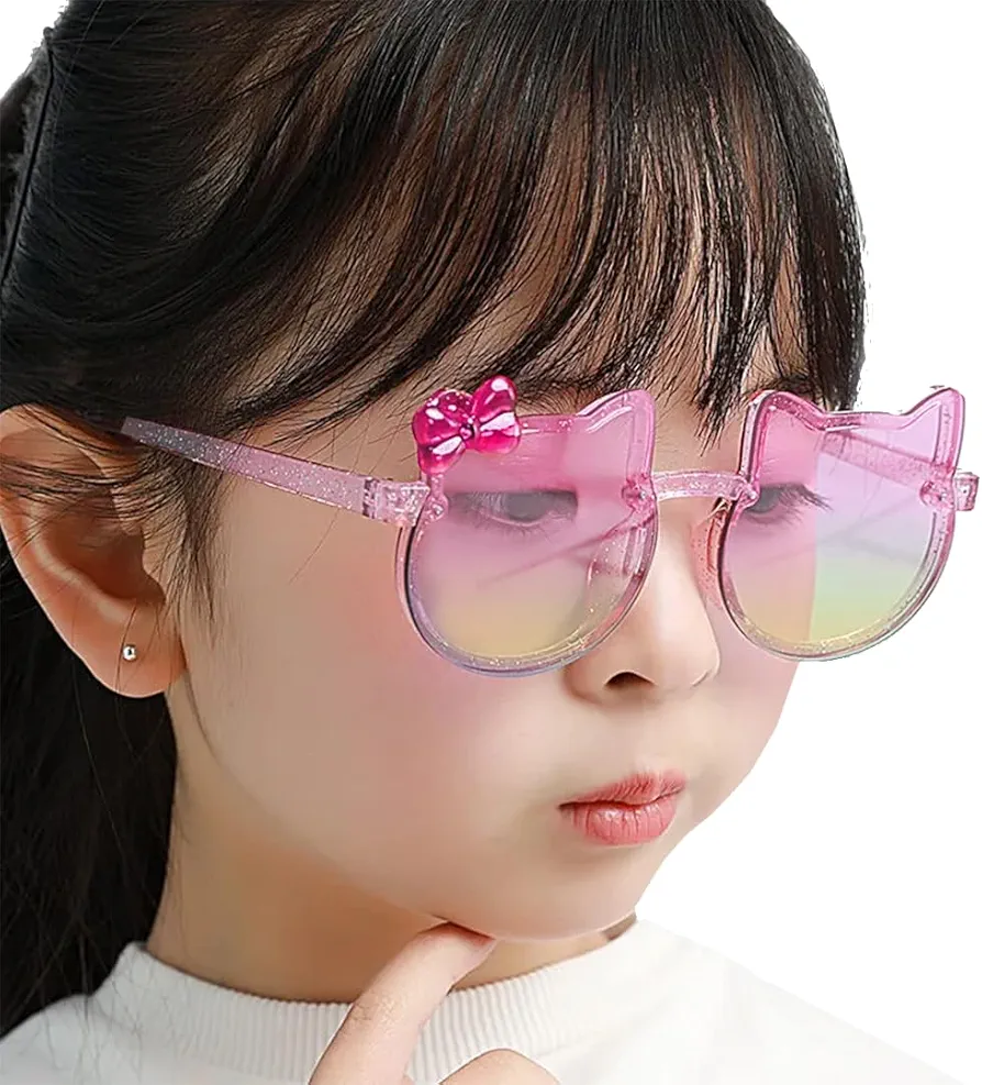 Cute cat-style unisex sunglasses for kids, offering stylish looks and 100% UV protection.