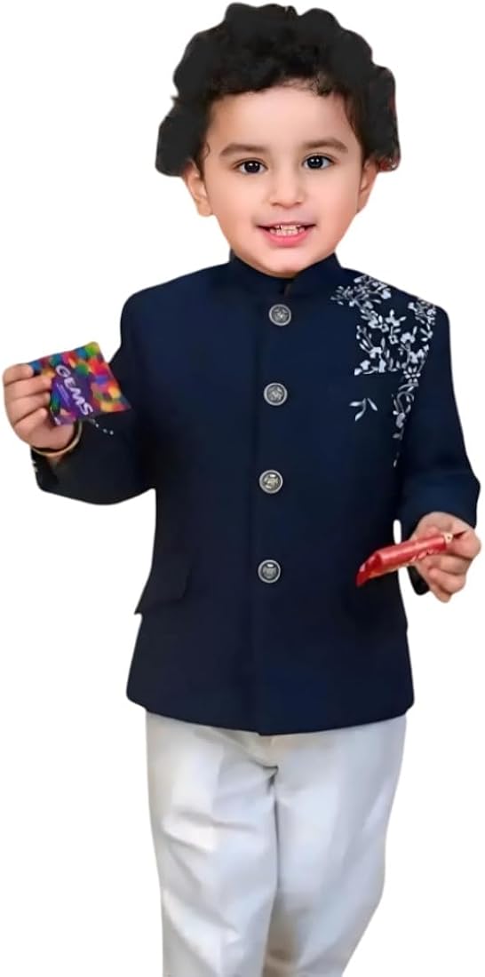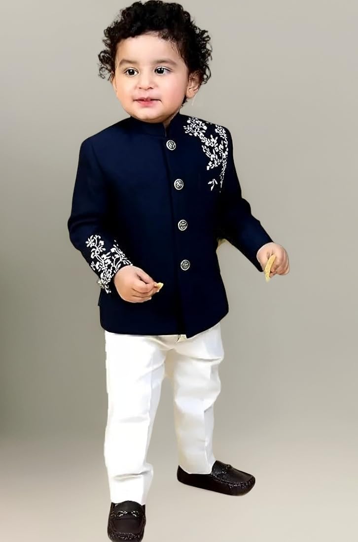 Dress your little prince in this Baby Boy Sherwani Set, specially designed for weddings and festive celebrations. Featuring a beautifully crafted navy blue sherwani, this outfit gives a royal and traditional look that is perfect for special occasions.