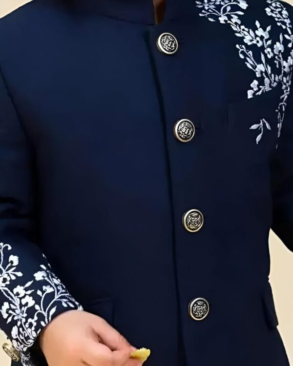 This navy blue sherwani set is a perfect blend of tradition and comfort, making your baby boy stand out on every special occasion.