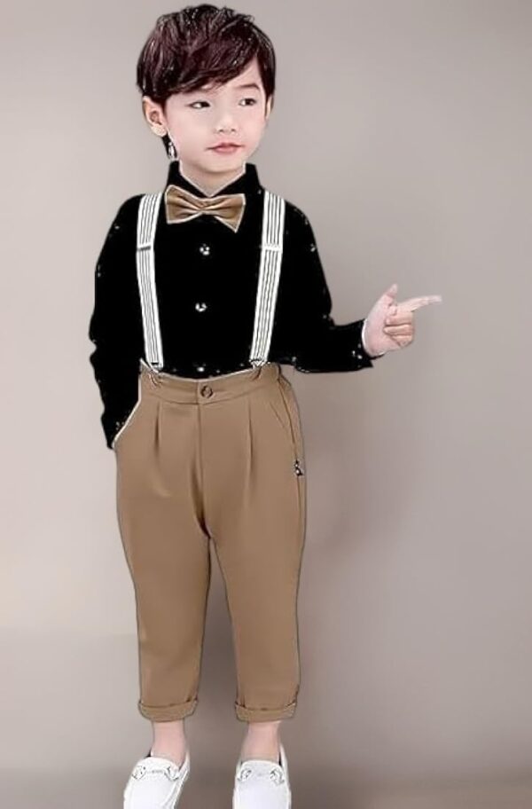 Baby Boys Cotton Blend & Spandex Full Sleeve Romper – Soft, breathable romper with a cute bow and suspender style for stylish baby wear.