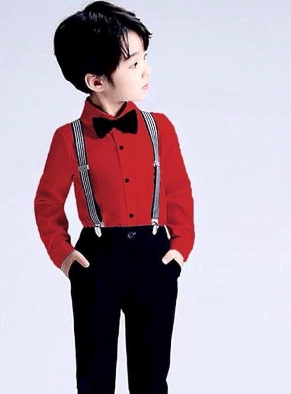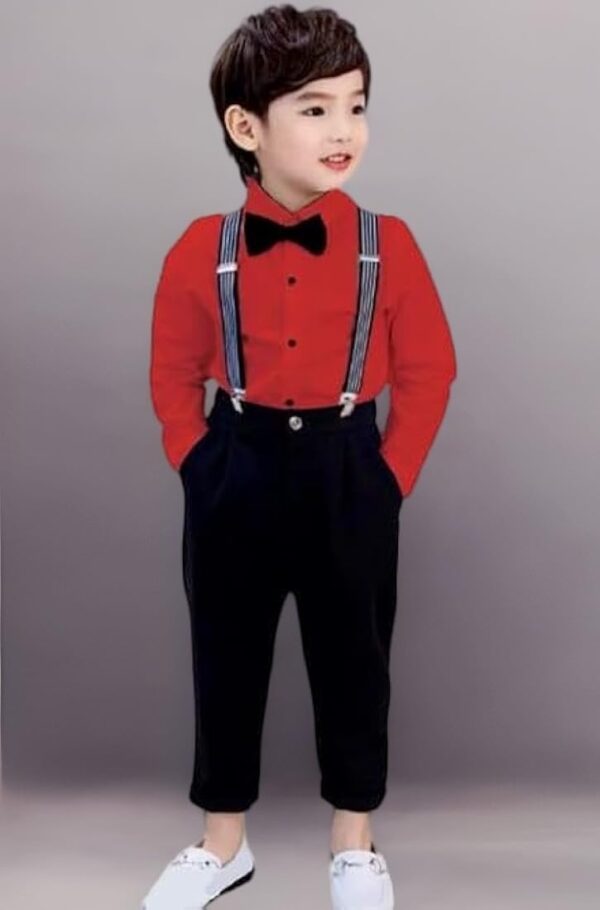Baby Boys Cotton Blend & Spandex Full Sleeve Romper – Soft, breathable romper with a cute bow and suspender style for stylish baby wear.