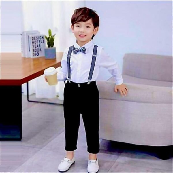 Baby Boys Cotton Blend & Spandex Full Sleeve Romper – Soft, breathable romper with a cute bow and suspender style for stylish baby wear.