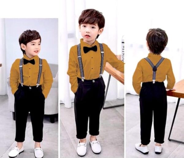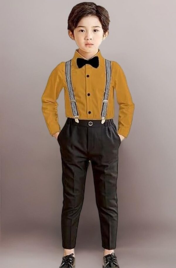 Baby Boys Cotton Blend & Spandex Full Sleeve Romper – Soft, breathable romper with a cute bow and suspender style for stylish baby wear.
