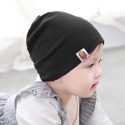 Black Baby Plain Stretchable Knitted Cotton Cap