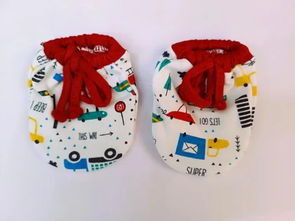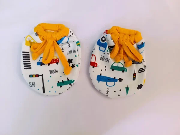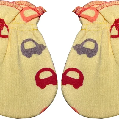 Soft cotton baby mittens with adjustable dori tie and cute colorful prints, designed to keep your baby’s hands warm and protected.