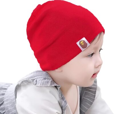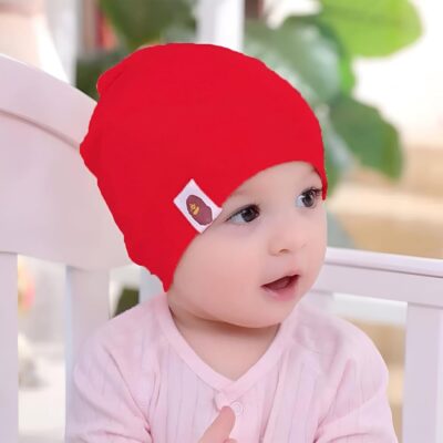 Red Baby Plain Stretchable Knitted Cotton Cap