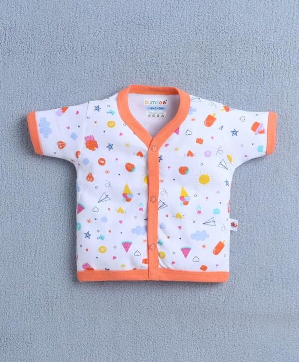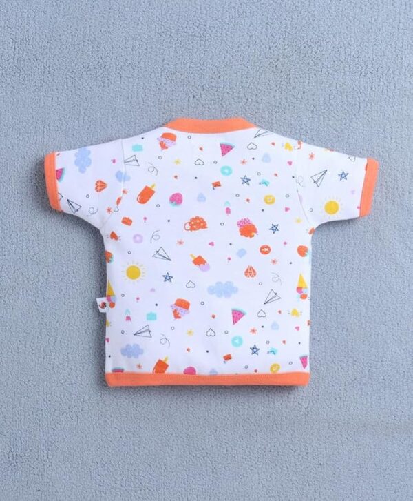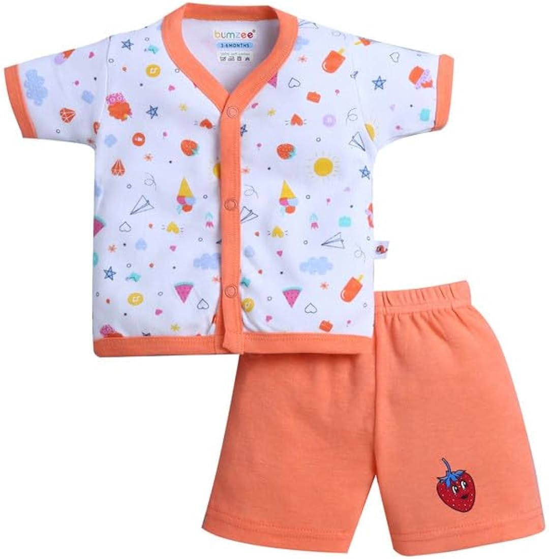 Baby Girl’s Cotton Half Sleeves Jabla & Short Set (Orange White) made from soft, breathable cotton fabric. Includes a comfortable jabla top and matching shorts, perfect for daily wear, summer wear, and sleepwear for baby girls.