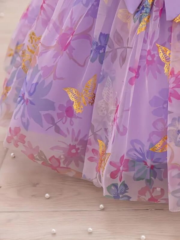 Designed with cute puff sleeves for a classic princess-style look.