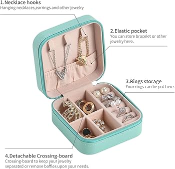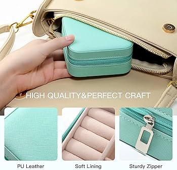 A modern and lightweight PU leather jewellery organizer designed to store rings, earrings, necklaces, bracelets, and watches neatly.