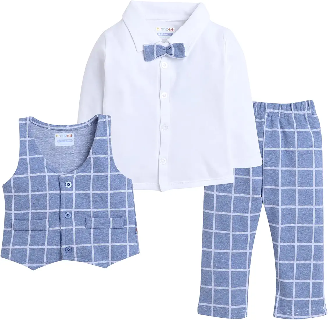 The set includes 1 full sleeves shirt, 1 waistcoat, and 1 pant for a complete formal outfit.