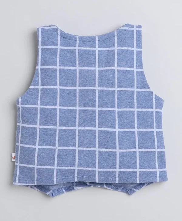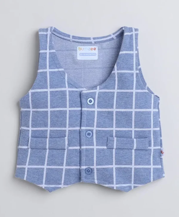 Beige & Navy Boys Full Sleeves Shirt Waistcoat Set is made from 100% pure cotton fabric for comfort and breathability.