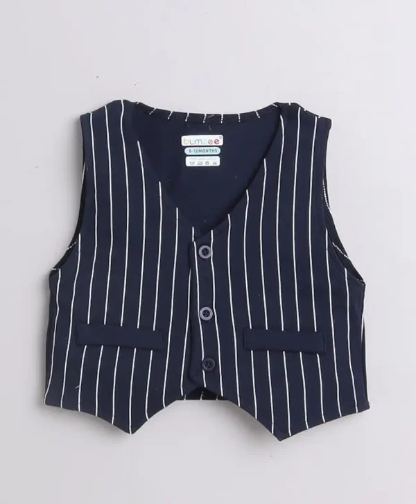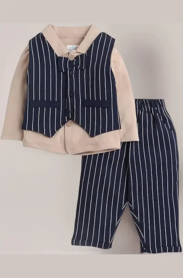 Beige & Navy Boys Full Sleeves Shirt Waistcoat Set is made from 100% pure cotton fabric for comfort and breathability.