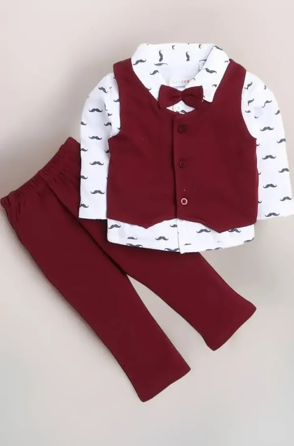 Boys Cotton Full Sleeves Shirt Waistcoat Set – Stylish cotton formal outfit with shirt, waistcoat, and pant for a smart look.