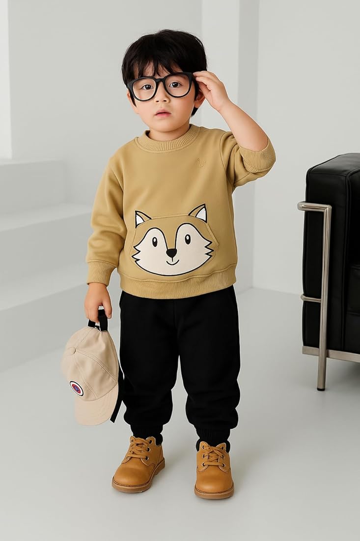Keep your little one warm and stylish with this Boys Cotton Sweatshirt with Cute Fox Print (Beige). Designed especially for boys, this sweatshirt features an adorable fox print that adds a fun and playful touch to your child’s outfit.