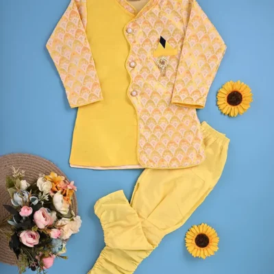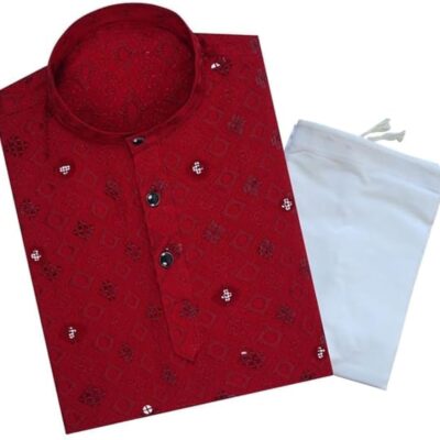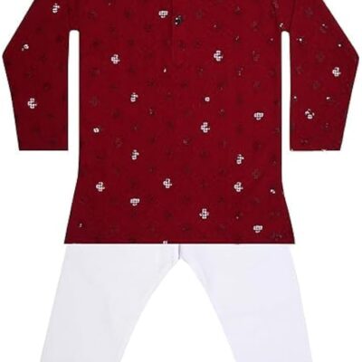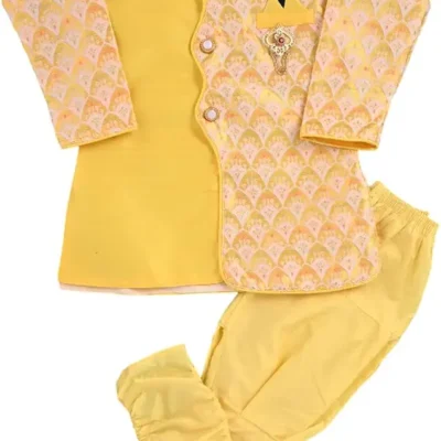 Make your little one look stylish and traditional with this Boys Designer Sherwani Set. Made from comfortable and breathable cotton blend fabric, this outfit ensures ease of movement while maintaining a rich ethnic appearance.