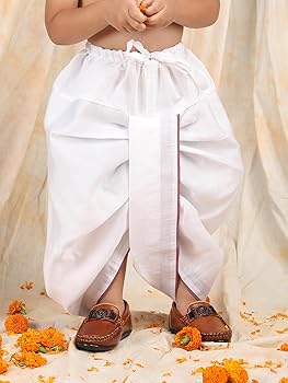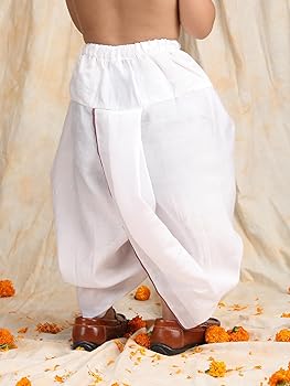 The color combination of blue and white adds a fresh and sophisticated touch, making it ideal for Diwali, Eid, family gatherings, school cultural programs, and birthday celebrations. The dhoti features a comfortable elastic waistband, ensuring easy wear and a relaxed fit for active kids.