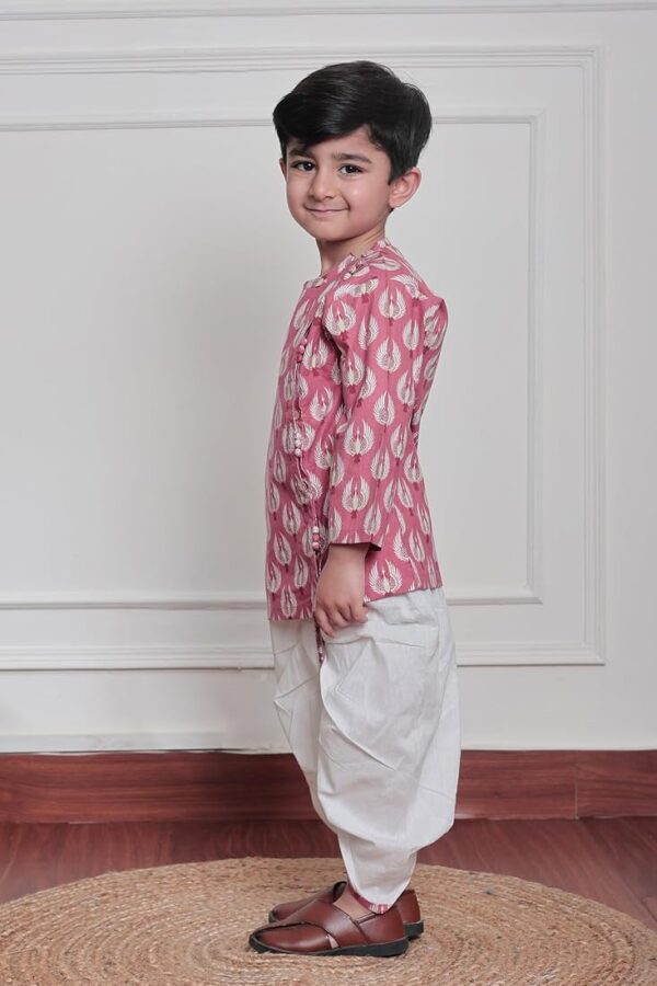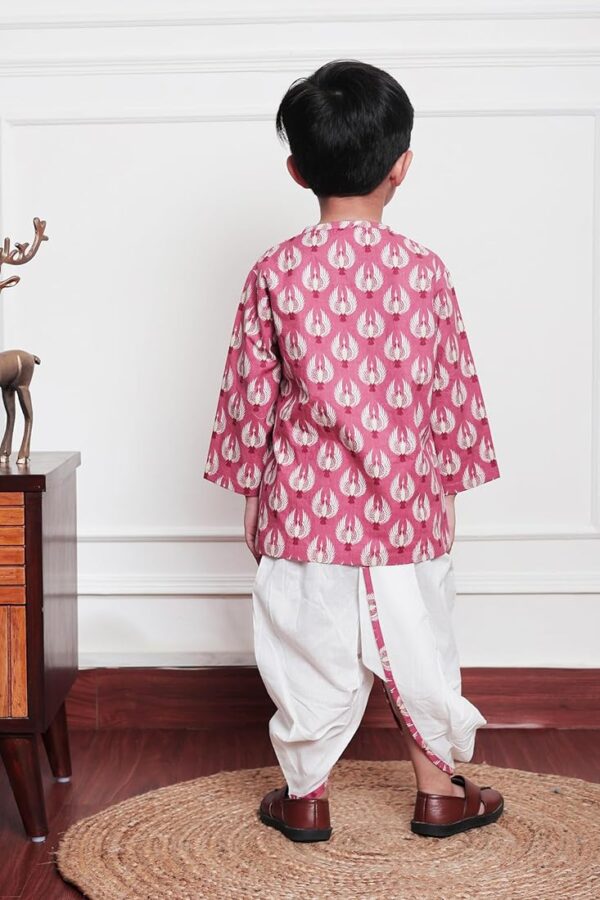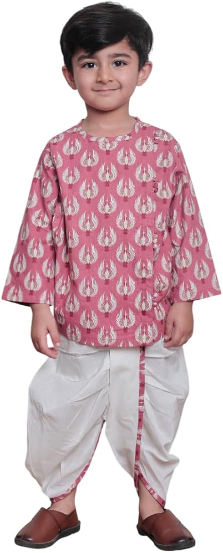 Boys Elegant Traditional Dhoti Kurta Set (Pink Bird) – Kids Ethnic Wear for Weddings, Festivals & Parties