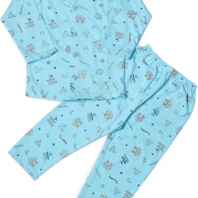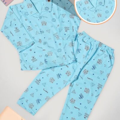 Cotton Printed Night Suit/ Palazzo Night Suit ( Blue )