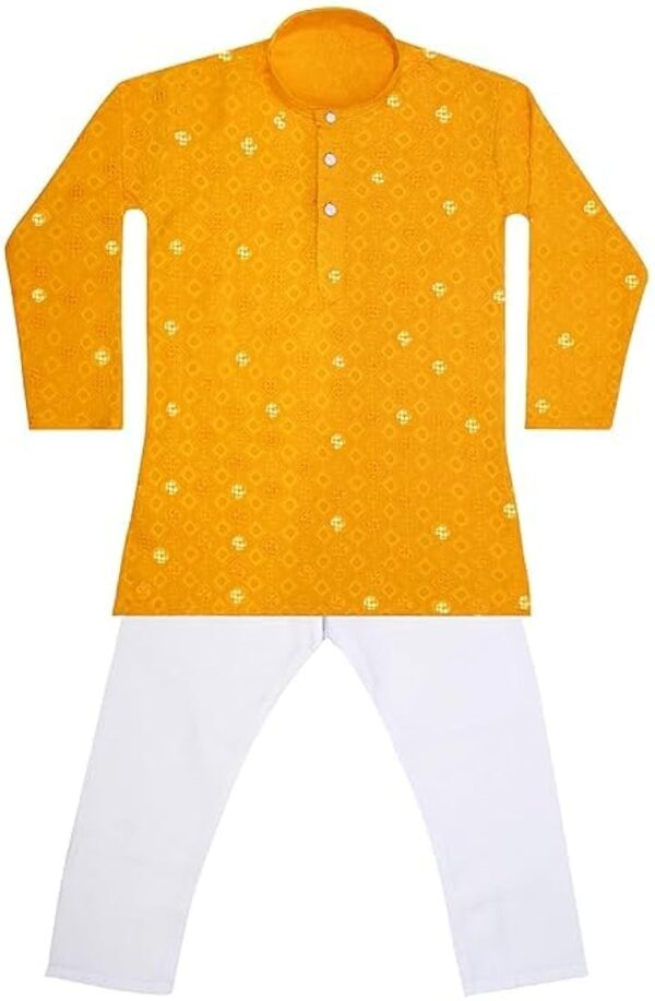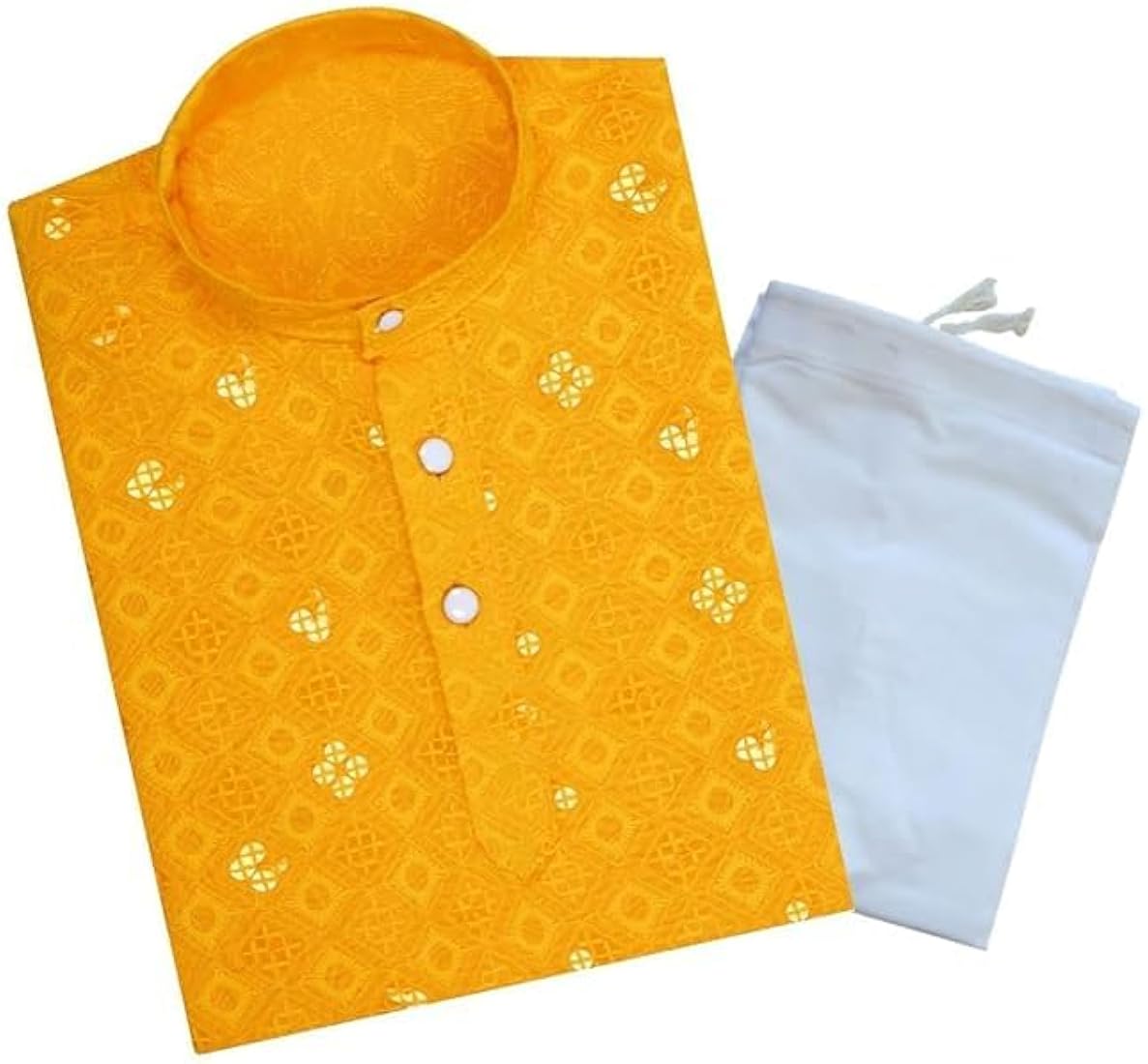 The vibrant yellow color adds a joyful and festive touch, making this outfit perfect for weddings, festivals, family gatherings, cultural events, school functions, Haldi ceremonies, and celebrations like Diwali, Eid, and birthday parties. With its simple yet stylish design, this kurta pyjama set ensures your child looks adorable and festive at every event.