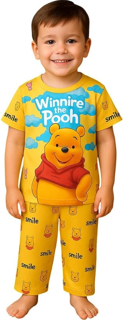 The set includes a comfortable top and matching pyjama, designed with a relaxed fit that allows easy movement while sleeping, playing, or lounging at home. The lightweight material feels gentle on the skin, making it suitable for everyday nightwear.