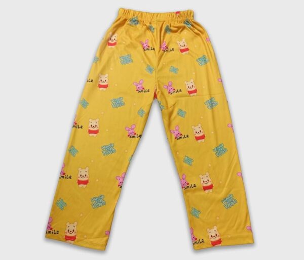 The pyjama features an elastic waistband that provides a secure and comfortable fit without feeling tight. The bright yellow color with adorable cartoon prints gives the set a fun and charming look that is perfect for girls.
