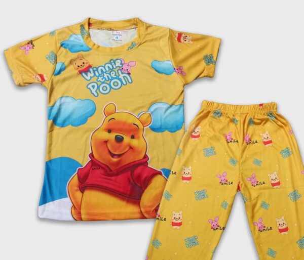 The set includes a comfortable top and matching pyjama, designed with a relaxed fit that allows easy movement while sleeping, playing, or lounging at home. The lightweight fabric is gentle on the skin, making it perfect for everyday nightwear.