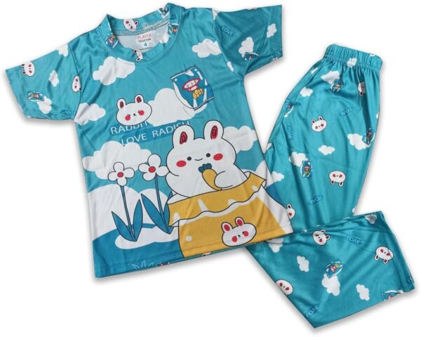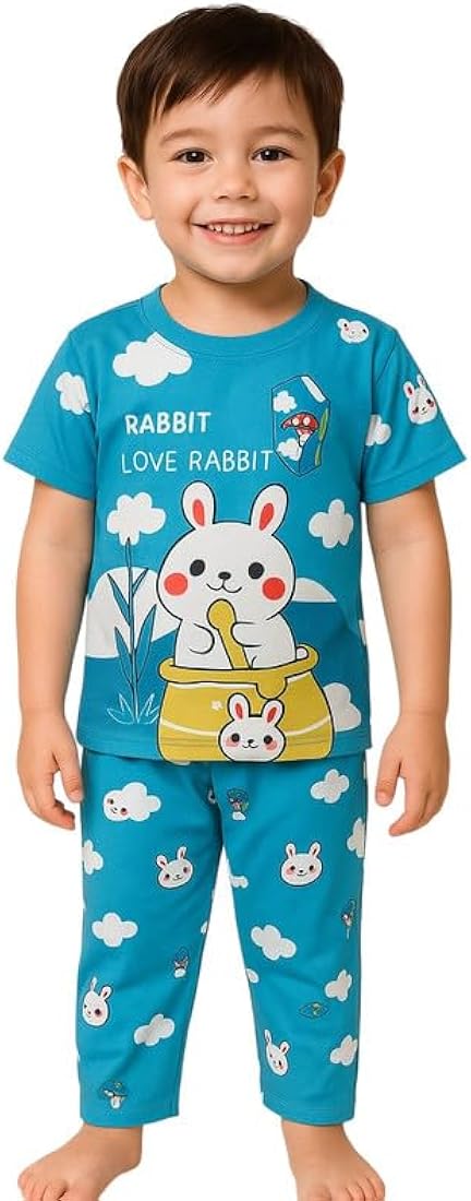 The set includes a comfortable top and matching pyjama, designed to provide a relaxed fit that allows easy movement while sleeping or playing at home. The lightweight fabric is gentle on the skin and suitable for all-day comfort, making it perfect for bedtime, lounging, or casual home wear.