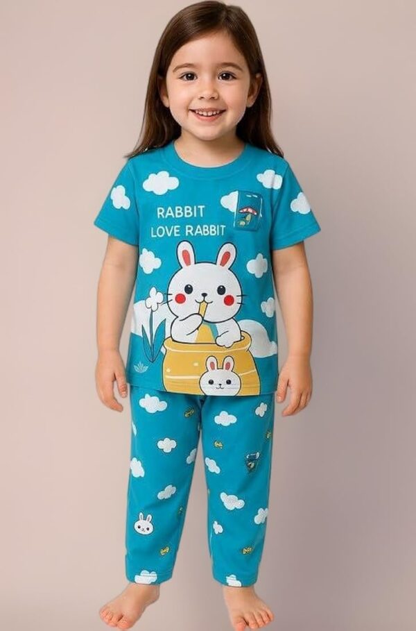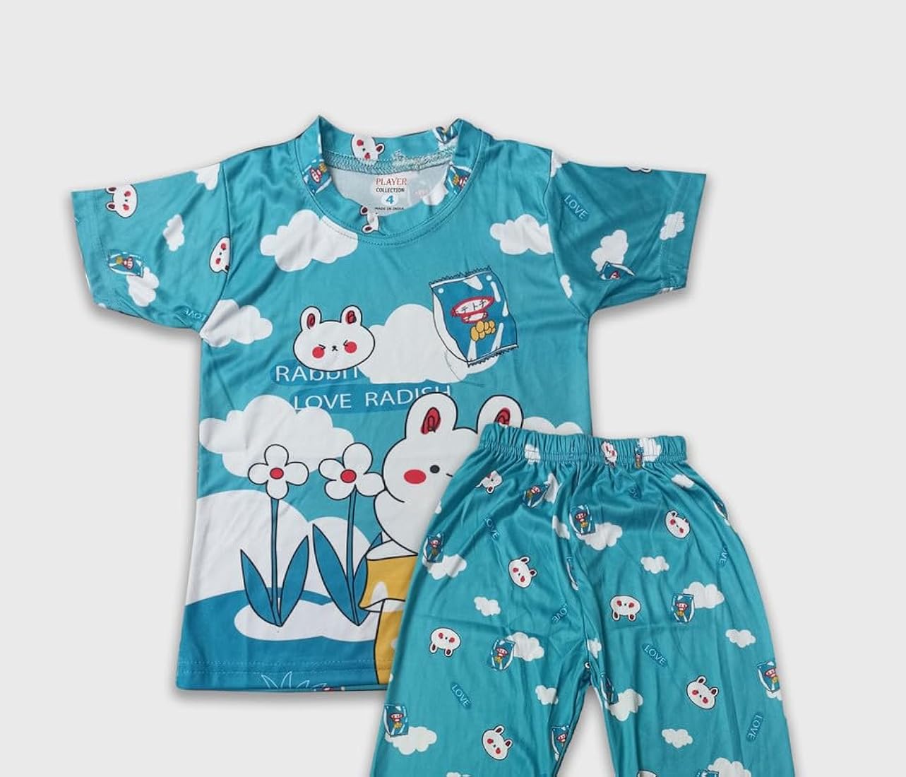 The set includes a comfortable top and matching pyjama, designed with a relaxed fit that allows easy movement while sleeping, playing, or lounging at home. The lightweight material feels gentle on the skin and is perfect for everyday nightwear.
