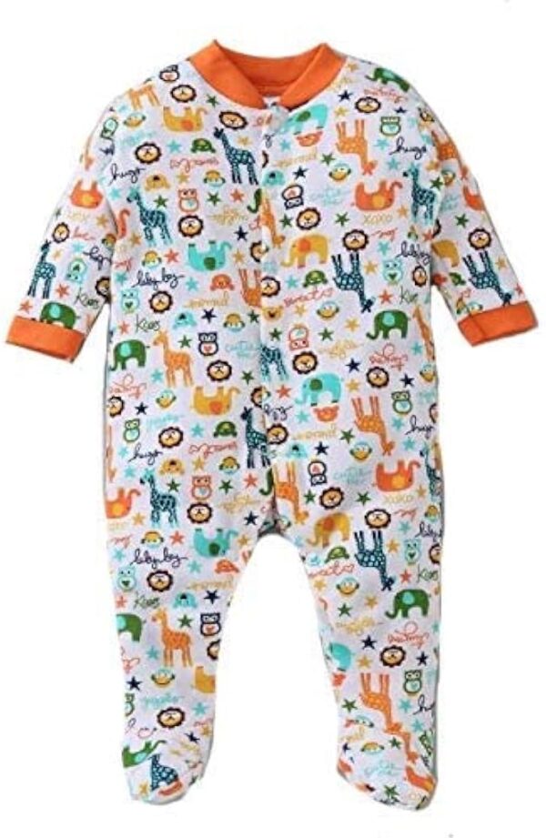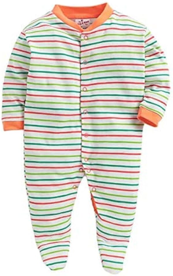 Combo Pack of 3 – 100% Cotton Full Body Rompers are made from super-soft, breathable cotton fabric that is gentle on delicate baby skin.