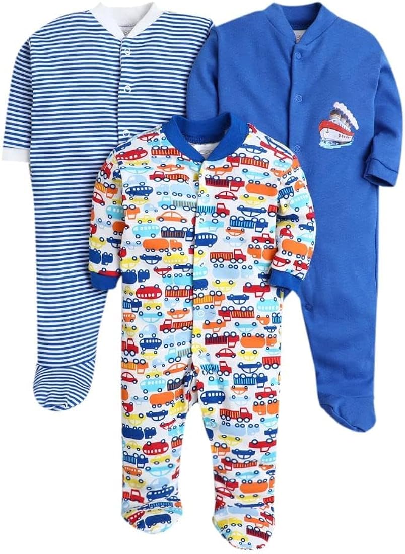 Combo Pack of 3 – 100% Cotton Full Body Rompers are made from super-soft, breathable cotton fabric that is gentle on delicate baby skin.