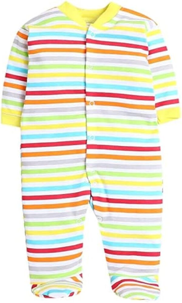 Combo Pack of 3 – 100% Cotton Full Body Rompers are made from super-soft, breathable cotton fabric that is gentle on delicate baby skin.