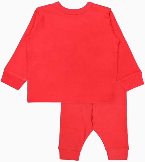 The set includes a comfortable full sleeve top paired with matching pants, designed with a relaxed fit so your baby can move freely and comfortably. The pants feature an elastic waistband, ensuring a secure and flexible fit without causing discomfort.