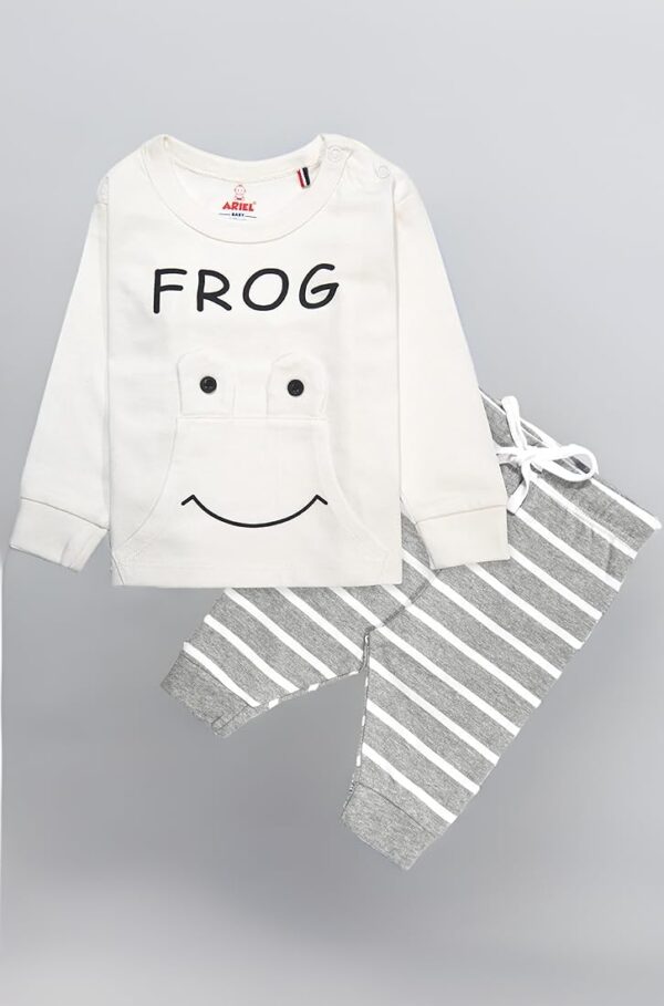 The cute White Frog print design adds a fun and playful touch, making this clothing set both charming and stylish for your little one. Ideal for daily wear, sleepwear, playtime, outings, or home wear, this cotton clothing set combines softness, comfort, and an adorable look.