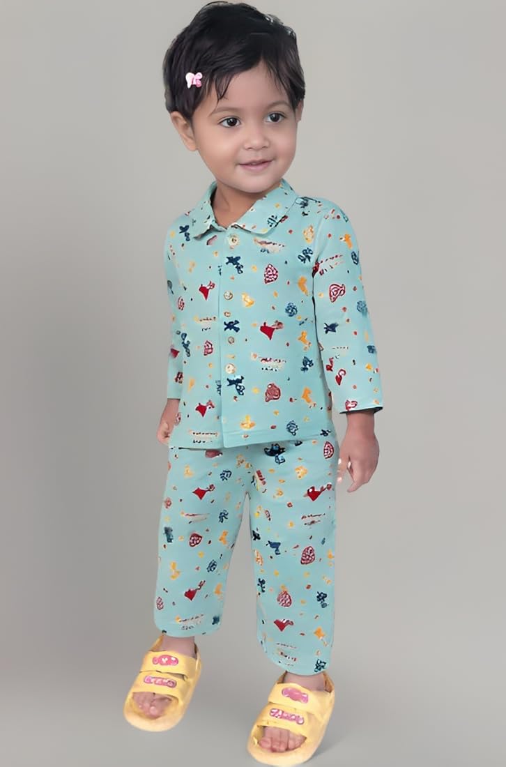 This Cotton Full Sleeves Night Suit – Blue is made from soft and breathable cotton for all-night comfort. It includes a full sleeves top and matching bottoms with an elastic waistband for a relaxed fit. Perfect for sleepwear, nightwear, and comfortable home wear. 🌙👕